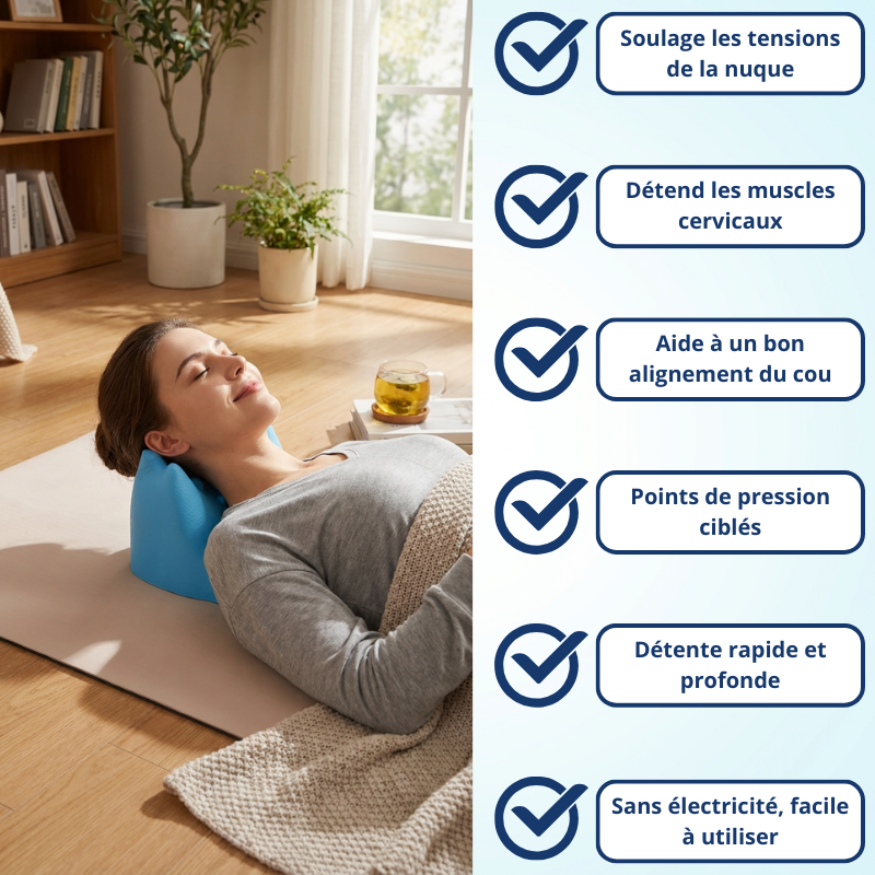 Un coussin de massage conçu pour le cou, pensé pour apporter détente et confort ciblé au niveau des cervicales.